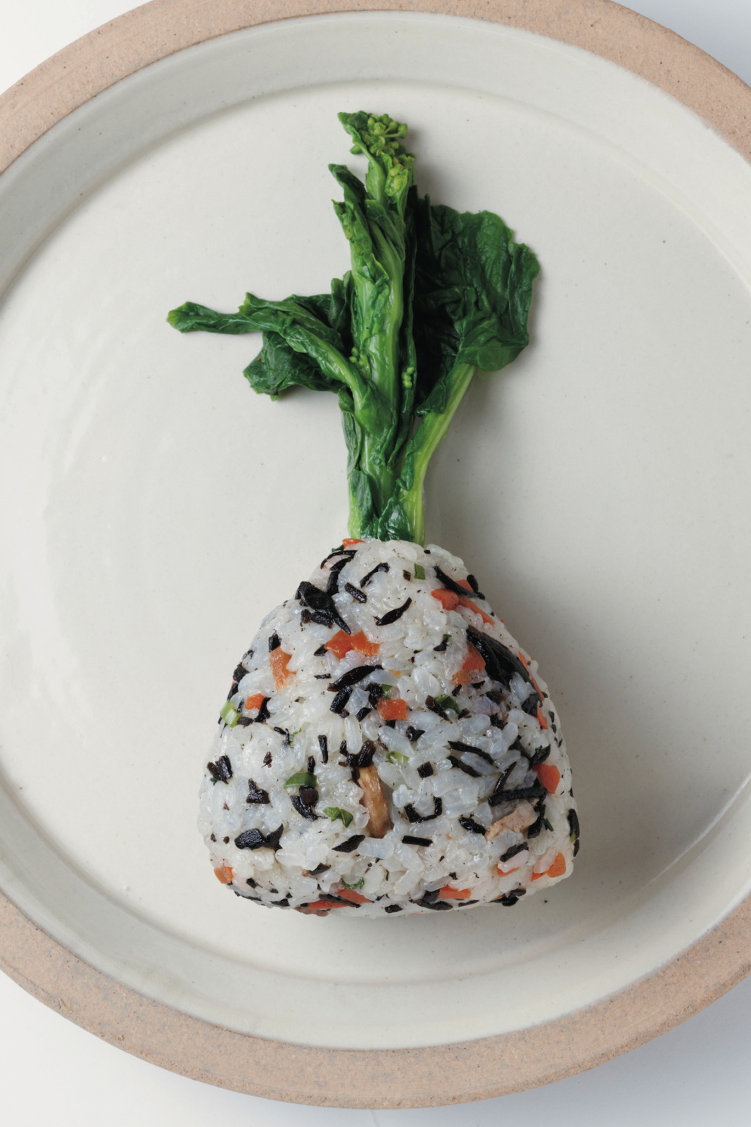 3.菜の花をまんなかに入れた状態でおにぎりを握る