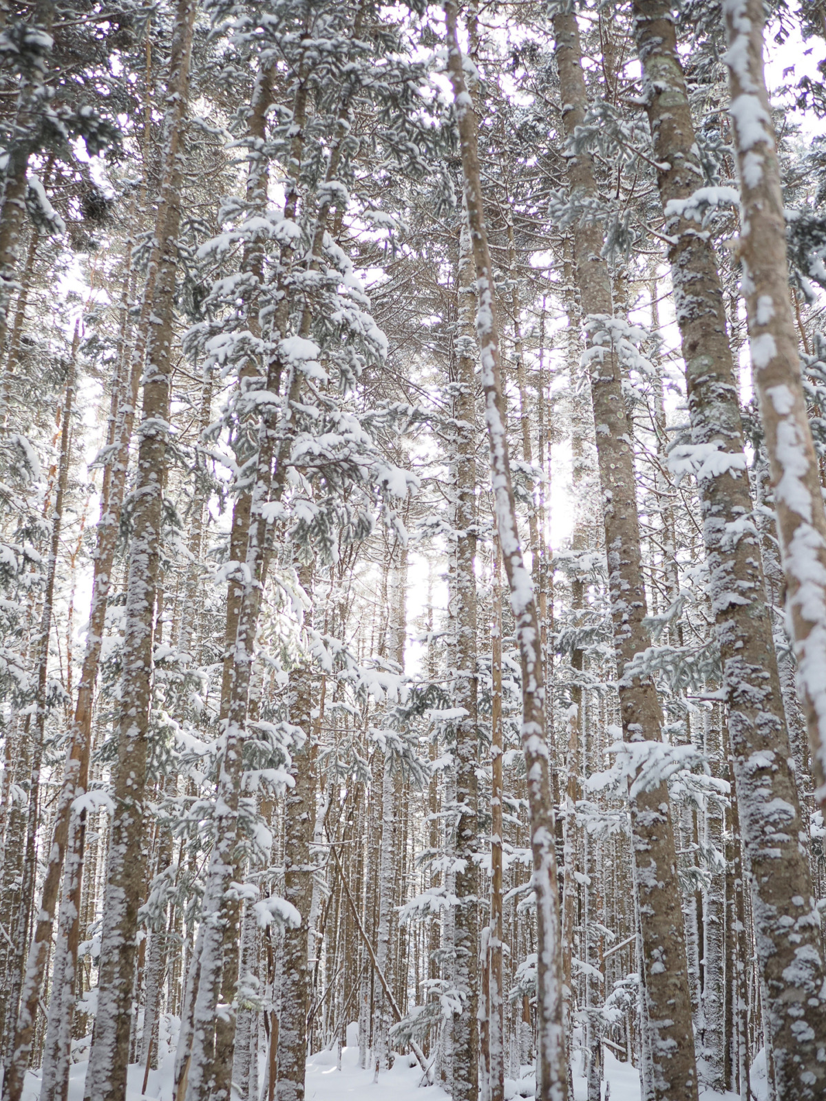 冬の森に光が入り、枝についた雪が風に舞いキラキラ輝く。美しすぎて何度も何度もシャッターを切りました。おなじ場所にいて移りゆく光を待つ、なんともぜいたくでかけがえのない時間です。