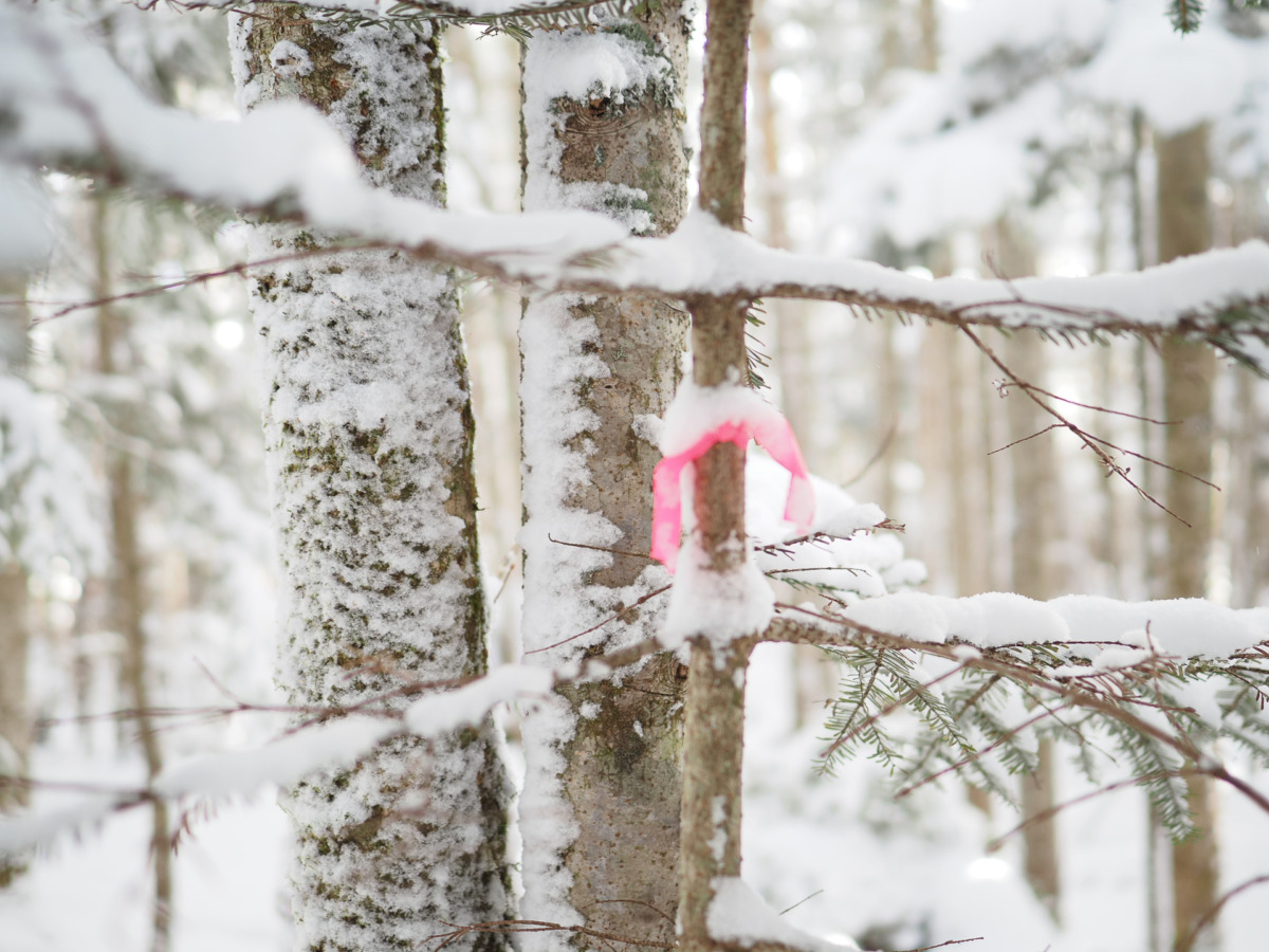 ピンクのテープがアクセント、かわいい。森のなかのかわいいものを探しながら歩くのも楽しいです。