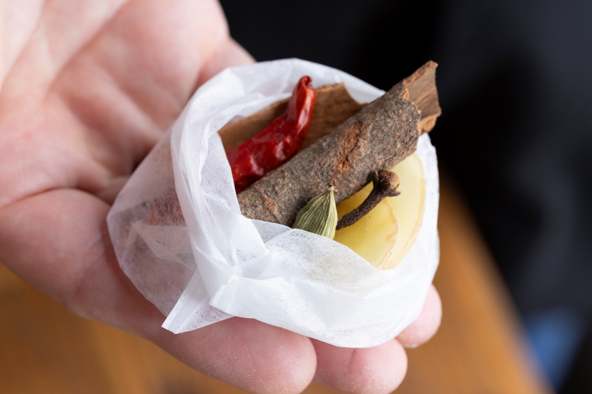▲Aの材料はお茶パックに入れて持っていくと、そのまま調理できるので便利。シナモンスティックは市販のもので◎。