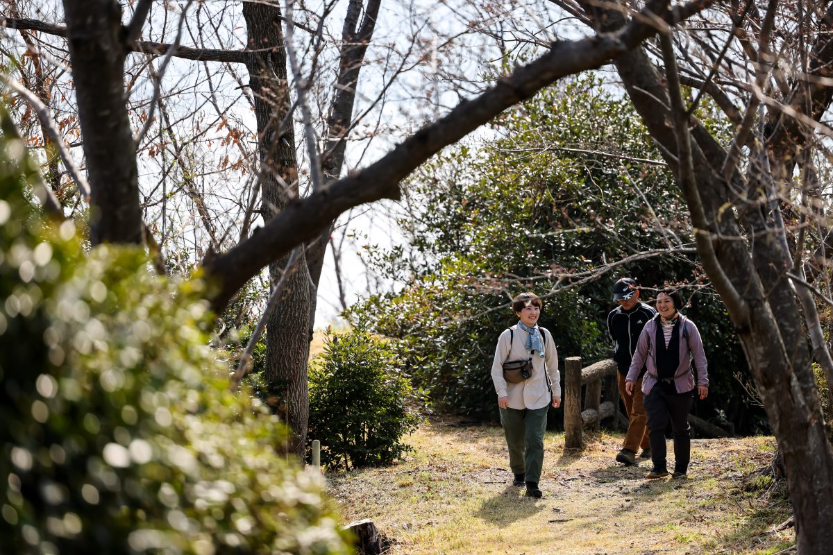 積善山の登山口から山頂までは約5kmの道沿いに桜が続く。開花時期になると、近県から花見目的で来る客でにぎわう。私たちが行った時期はまだ開花宣言前で、桜のつぼみのトンネルを一歩ずつ進んでいった。