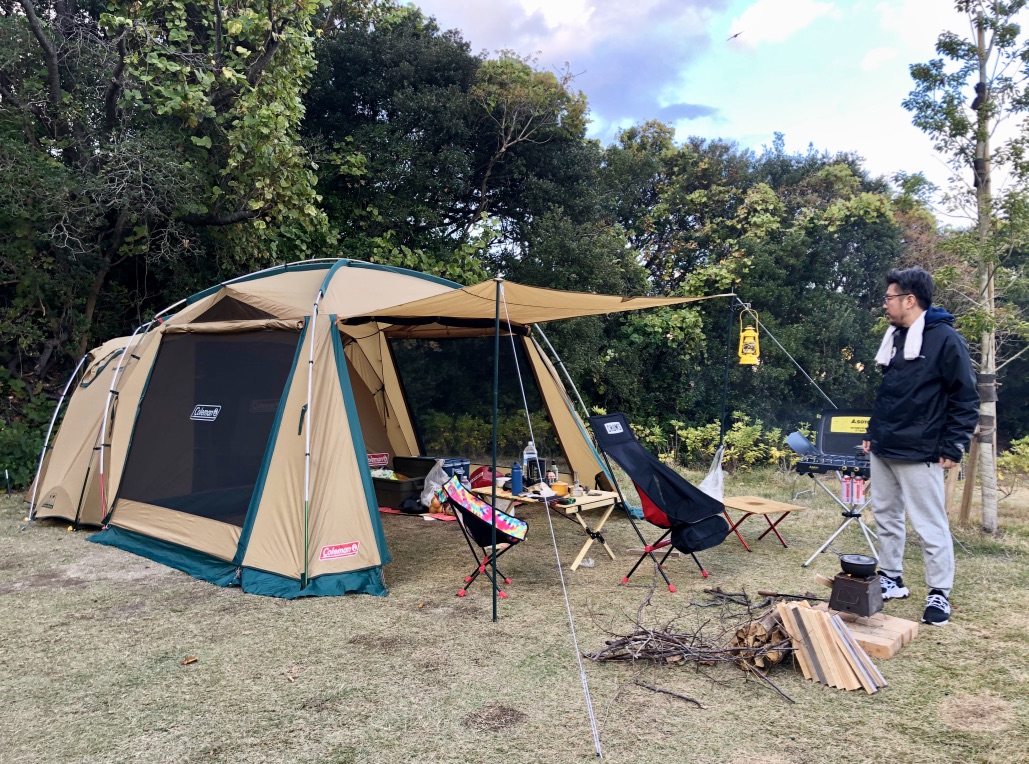 事前に調べておいた淡路島のキャンプ場「休暇村南淡路」に、キャンプに興味があると言っていた友人を大阪から招いた。持っているふたつのテントのうち、大きいほうのテントを選び、イスや食器なども2人分を移動車に積んで東京を出発している。準備は万端だ。