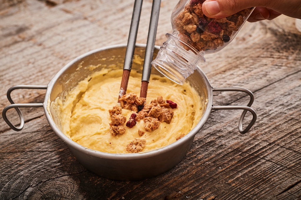 前回、ご紹介した「杏とベリーのブラウニー」(写真左)と合わせて、焼きたてがおいしい山おやつにぜひチャレンジしてみてくださいね。