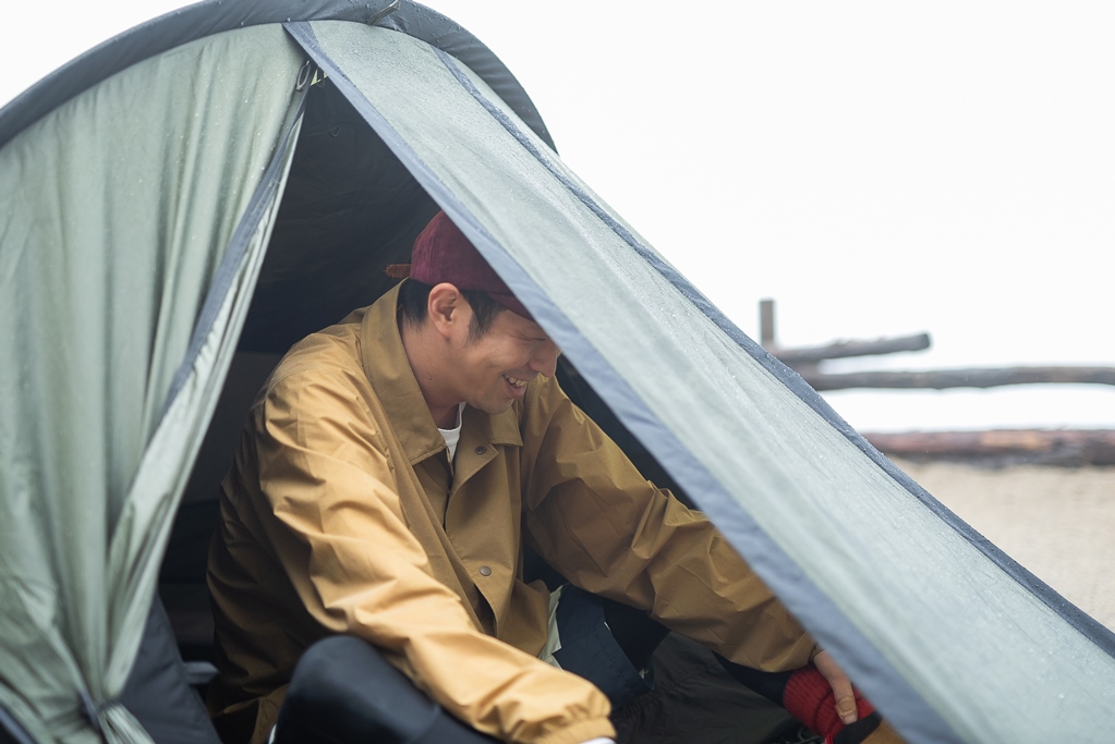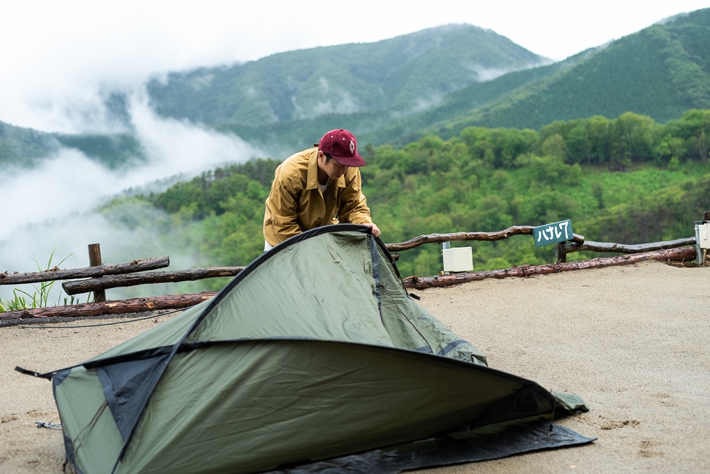 パラパラと降っていた雨も、夜にはいったん上がり、街の夜景を幻想的に見せてくれた。この場所で眠ることを実感し、なんだかとても特別な夜に感じた。このコロナ禍においての、アウトドアの可能性。テントの中でそんなことを考えていたはずなのに、気がついたらすぐに眠っていた。