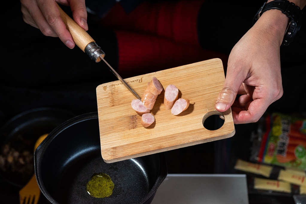 ▲お腹が空いたので何か作ろうとしている。ナイフはオピネルの#9を愛用。