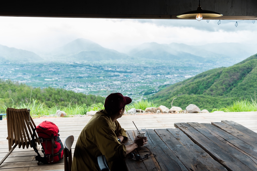 テントや寝袋をしまい、受付にチェックアウトを伝えに行くと、スタッフさんが今度オープンするという高台のカフェを案内してくれた。そこからさっきまでいたテントサイトやその先の街並み、そして遠くの山々を眺めながら、ぼんやりと考えていたことがある。アウトドアが好きなミュージシャンだからできること。