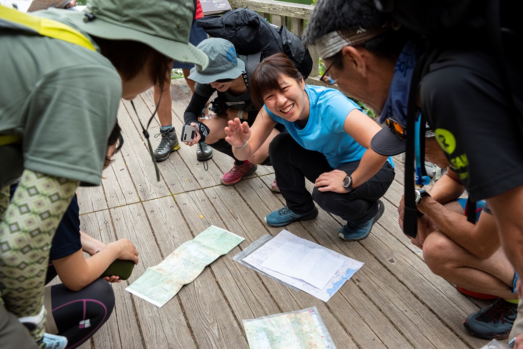▲今回取材をした、北村ポーリンさん率いるツアー「テントむし山旅」での一枚。この日歩く奥日光エリアの魅力を、地図を見ながらポーリンさんが解説中。