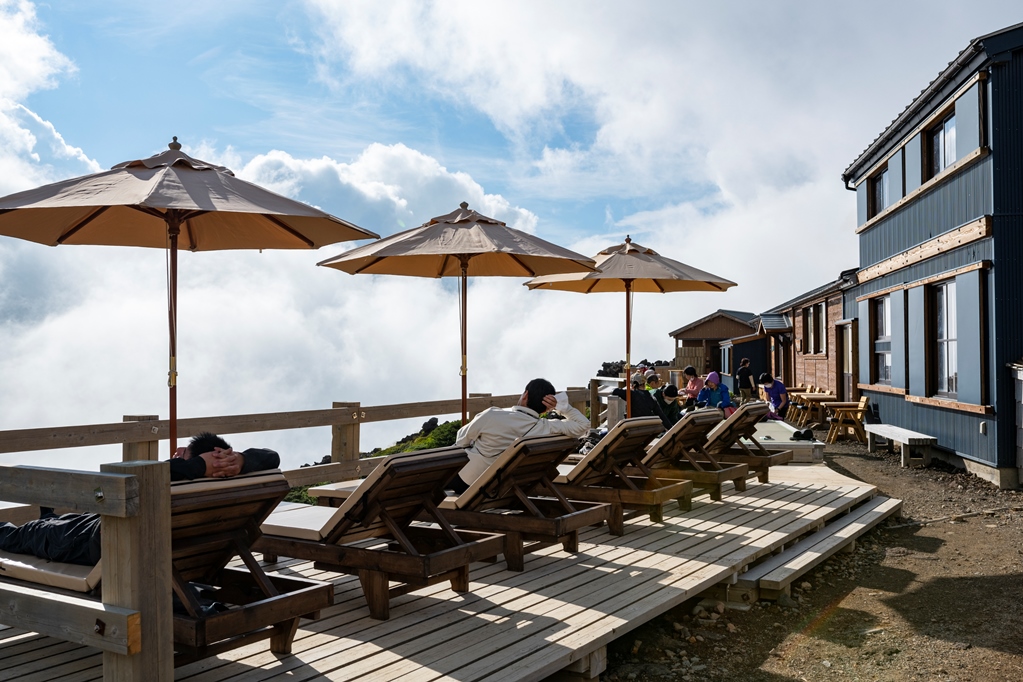 ▲市川さんこだわりの「ぱんだテラス」は登山者の憩いの場。好きな場所で、のんびりと過ごす時間を。
