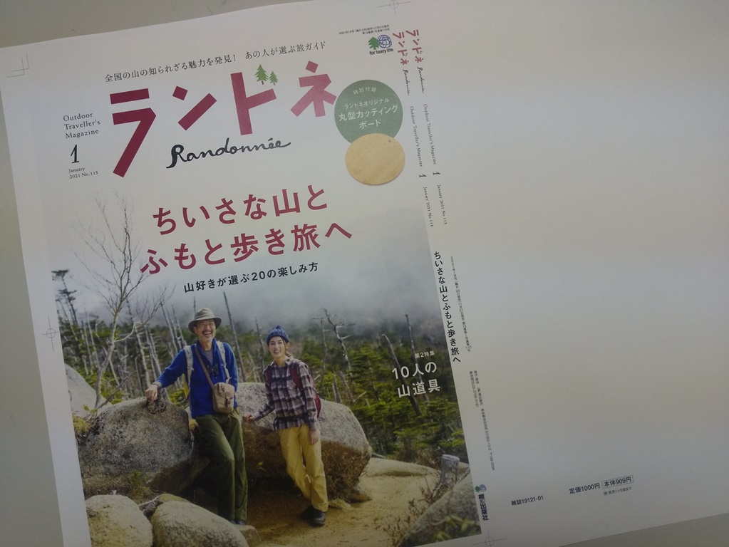 編集後記担当の安仁屋です。最新号『ランドネNo.115 1月号』の第一特集は「ちいさな山とふもと歩き旅へ」。P8-9の特集トビラにもあるように、今年はとにかく、「いつもとは違う山歩き。目指す山を、身近なフィールドへと移したり、時間やレベルに余裕をもたせたりと、登山者一人ひとりが新しいスタイルを模索している今日このごろ。」です▲