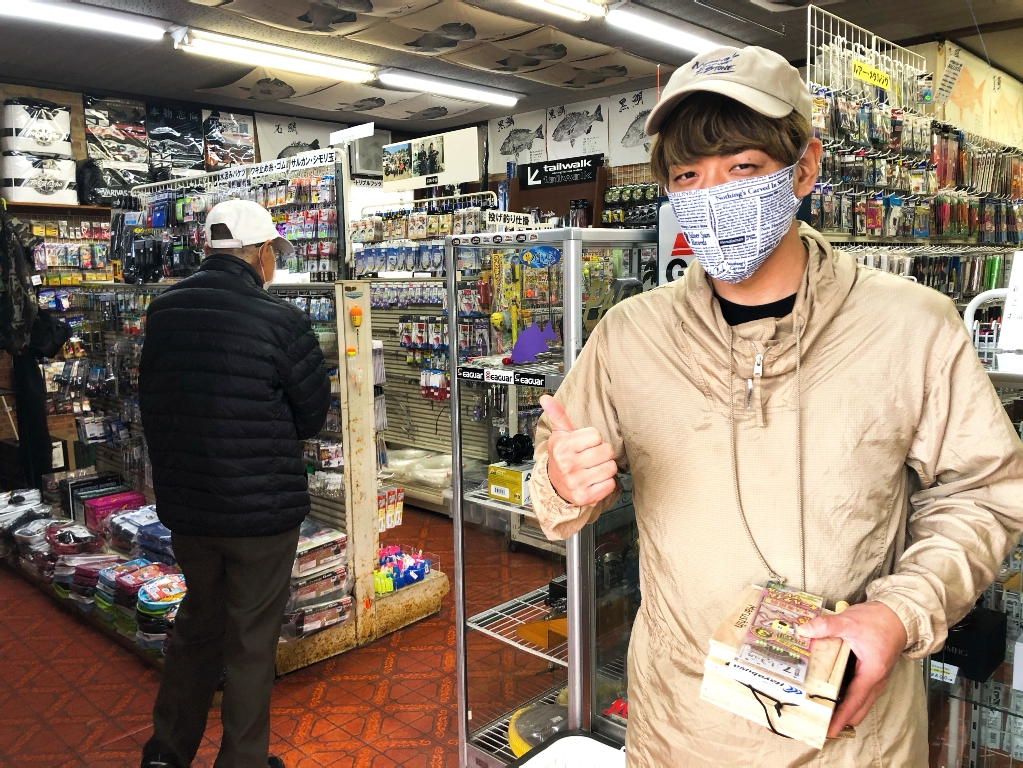 向かう道中、たまたま見つけた釣具屋に立ち寄った。とくにナビに目的地を登録していたわけではない様子だったが、彼曰く「少し調べてきたし、そもそもこの辺にないわけがない」とのこと。なるほど、そういうものなのか。店内では、店主と慣れた会話を少しだけ交わし餌の種類を決めていた。格好良い。
