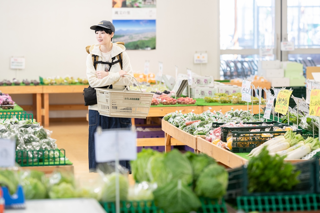 旬の高原野菜や果物、信州味噌や寒天など、茅野ならではの食材を購入するなら、迷わずここへ。広々とした店内に商品がずらりと並び、ジャムやお菓子、地酒やクラフトビールなどもあり。焼きたてのパンや高原野菜がいただける、ベーカリーカフェも併設。