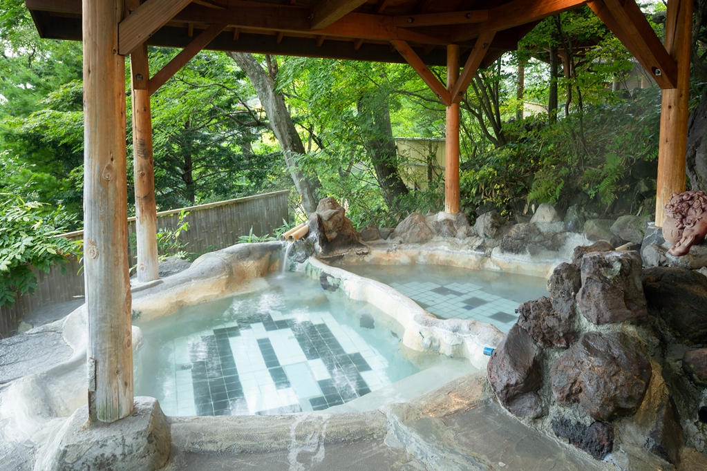 ビーナスライン沿いにあり、下山後に源泉かけ流しの温泉が楽しめる小斉の湯。元旅館の建物はレトロな雰囲気で、高原の自然を満喫しながら浸かれる5つの露天風呂が自慢。自然の地形を生かした立地にある露天風呂までは、長い階段を上がっていく。女性専用の露天風呂は森林浴の湯(一番上)と仇討ちの湯(上から2番目/上写真)。男女別の室内大浴場や、貸切の湯もあり。