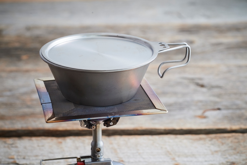 バーナーパットは炎を熱に変える優れもの。とろ火を可能にしてくれるので、料理が焦げつきにくくなります。薄くて軽量、かさばらないので、調理アイテムの中に忍ばせておくと役に立ちます。分離型のバーナーでない場合、輻射熱でガス缶や器具にダメージを与えてしまう場合があるので、短時間の使用にしてくださいね(カノウ)。
