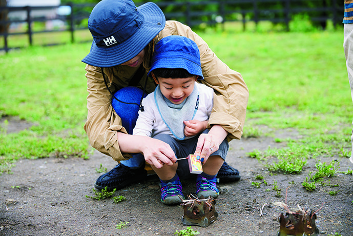 ワークショップの終盤には、焚き火を使ってお湯を沸かしたり、マシュマロを焼いたりする時間が設けられている。自分で火をおこし、笑顔いっぱいのるいくんとこあくんはどんな感想だったのか?