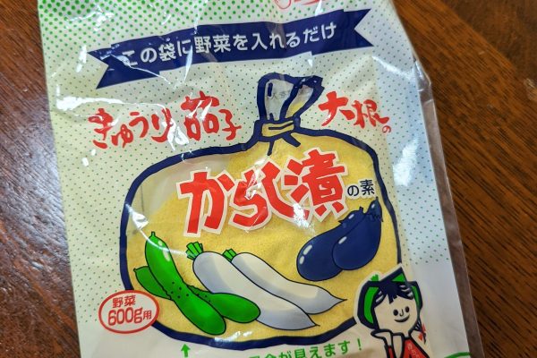 ご紹介するおみやげはニチノウ食品「からし漬の素」です。長野県にある「白馬森のわさび農園オートキャンプ場」でキャンプをしたときに近くのスーパーで購入しました。
