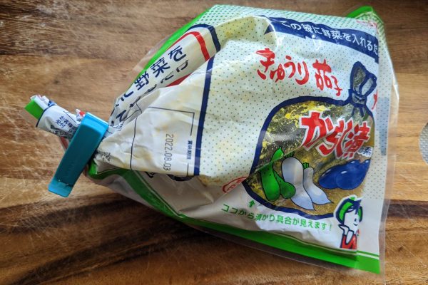 おいしい! ダイコンの苦みとパリパリ感、適度なからしの辛さ、大人の味! ナスもうま味が出ていておいしい! 野菜の苦みをおいしいと感じるなんて、味覚の発達としては最終段階か~と思いながら、あっという間に完食でした。あまりのおいしさに漬け終わった汁がもったいなく、キュウリを薄切りにして漬けてみました。これもまたいい感じでした。