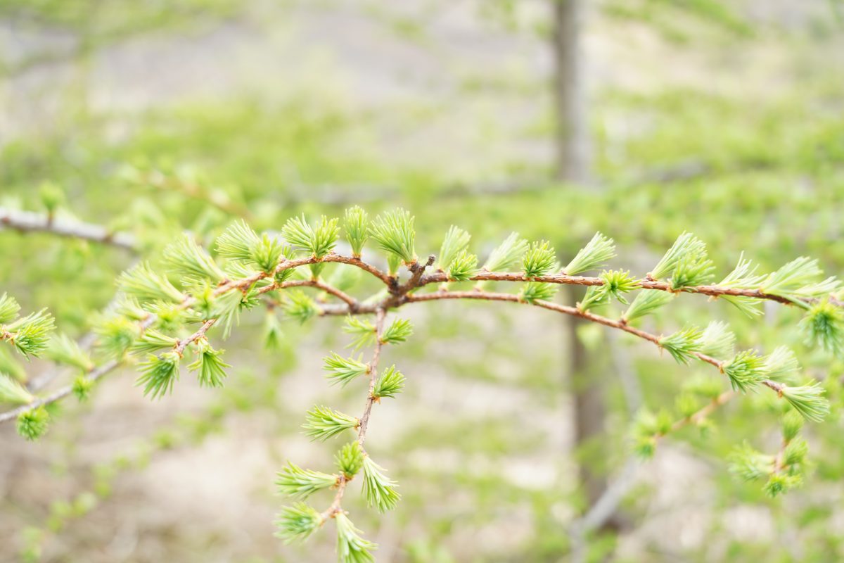 気持ちのいい樹林帯を抜けた先は、火山ならではの山容が広がります。視察に行った5月はカラマツの新芽がとっても可愛らしかったです。