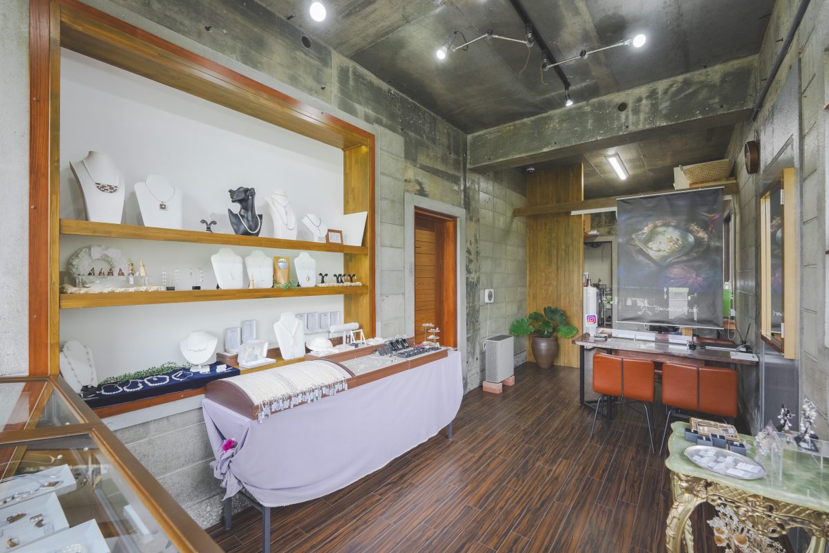 真珠の養殖からデザイン、加工まで一貫して行なっている。養殖場で真珠の珠出しや、工房でのアクセサリー作りを体験することも可能
