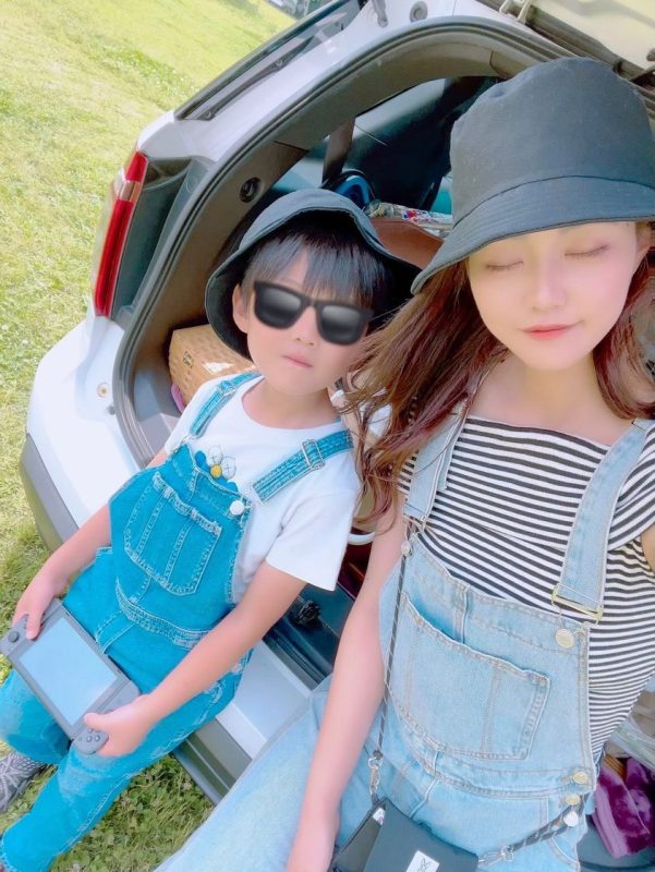 レギンスは冷感素材を履いているので、夏のキャンプでも快適に過ごせておすすめです。クマのデザインも可愛いですね。