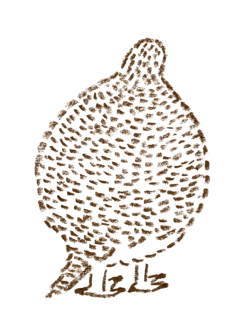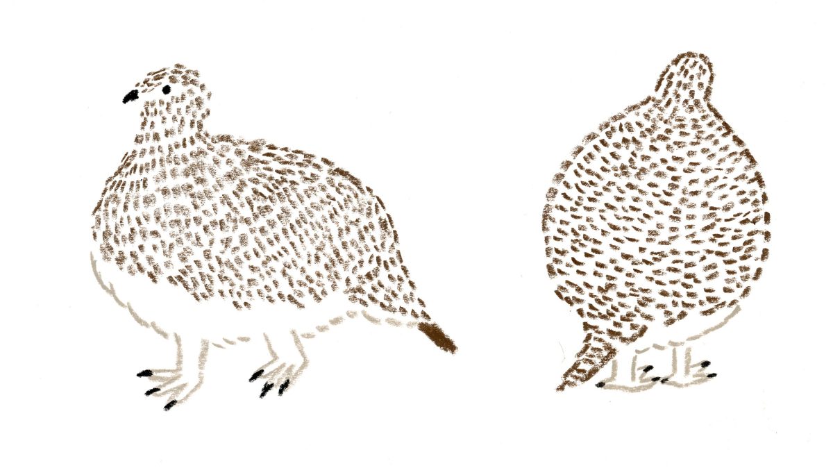 つぶらな目、短い脚、ぽってりとしたお尻など、かわいいライチョウがチャコールグレーの生地にプリントされます!