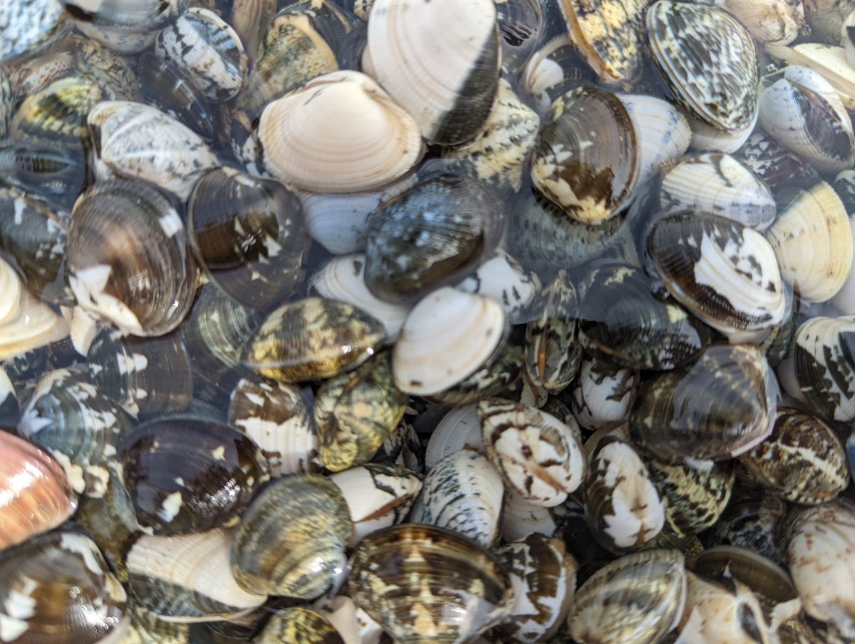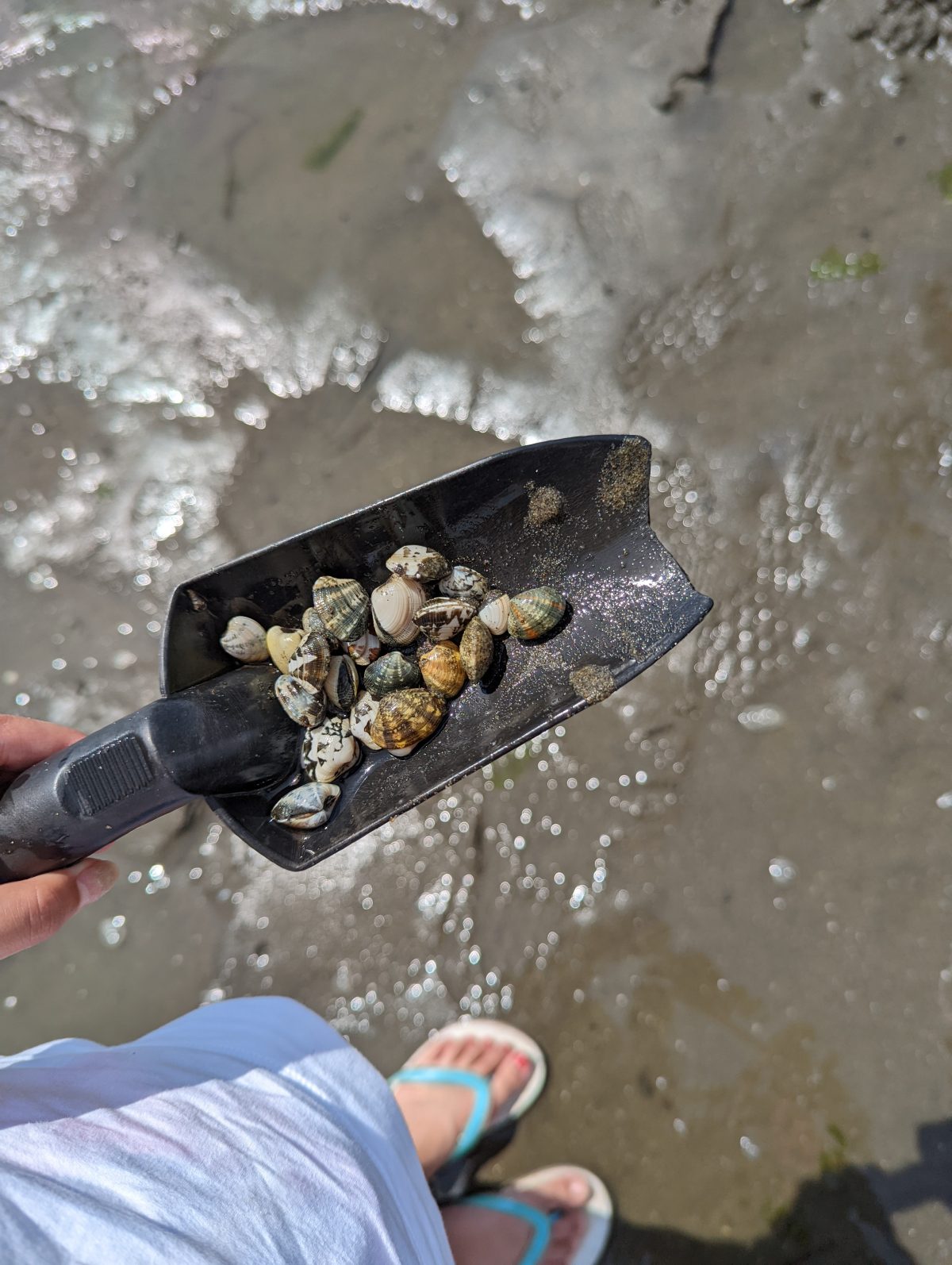 スコップでちょっと掘ったらアサリがジャラジャラと出てきました