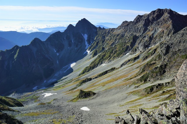 体力に自信のある人なら、カールを見下ろせる涸沢岳を目指してみよう。奥穂高岳方面へ歩きだし、急峻でゴロゴロとした岩が続く“ザイテングラート”を登っていく。落石に備えて、ヘルメットは必携だ。ゆっくり歩いても3時間ほどで、穂高岳山荘のある稜線に出る。穂高岳山荘からも充分にすばらしい景色を堪能できるのでここをゴールにしてもOK。標高3,103mの涸沢岳までは、さらにそこから片道約20分でたどり着ける。穂高の山々やカールはもちろん、槍ヶ岳、常念岳など北アルプスの名峰の絶景を楽しもう。