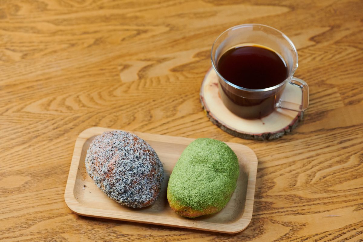 名物のあげパンは、きなこ、抹茶、チーズ、ココア、黒ゴマの5種類。注文を受けてから作る。揚げたてでふわふわの食感がたまらない!