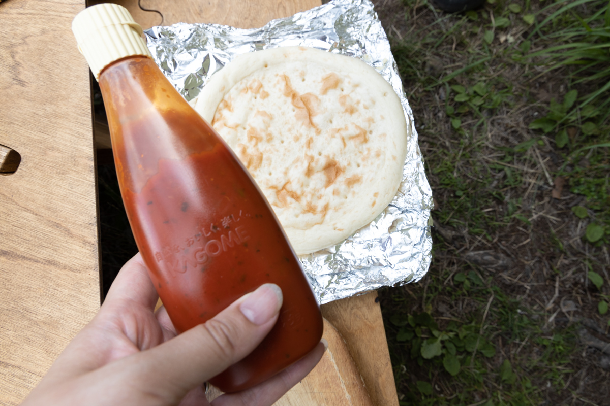 キャンプ場での洗い物も少なく済みますし、生地を広げてトッピングするだけなのでピザ作りが格段に楽になります。