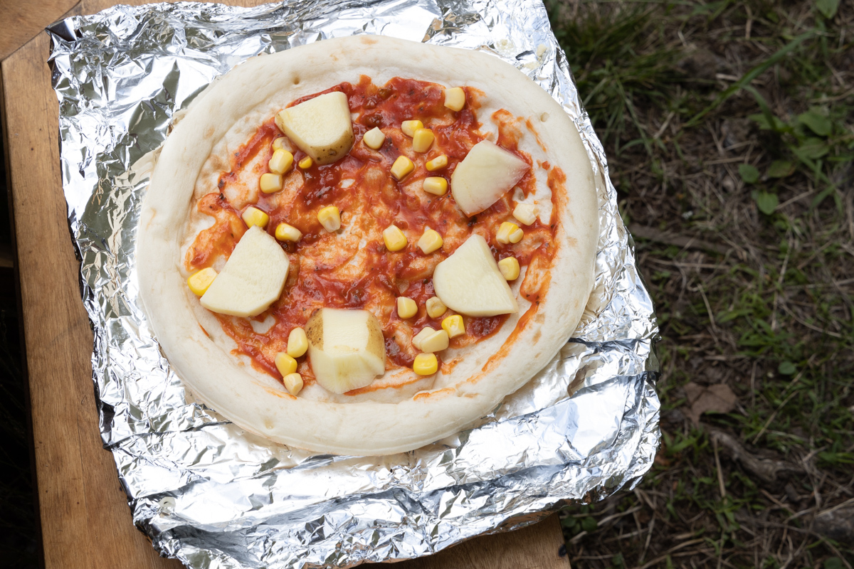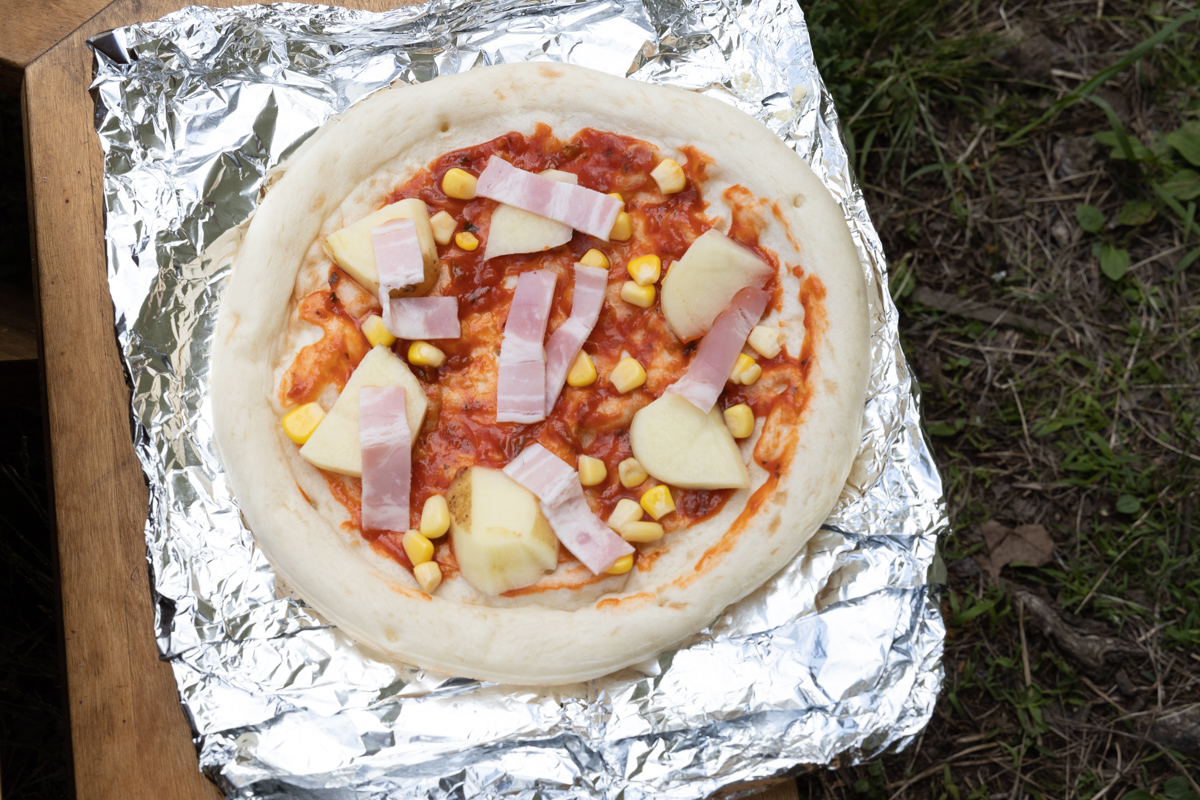 おうちで家族や友人と食べるピザも美味しいですが、キャンプで食べるピザは格別です!好きなトッピングなどを並べるのも楽しいですよ。