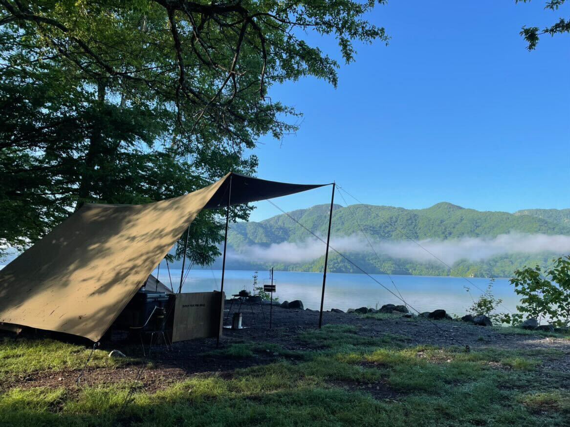 湖・山の景色を眺められるキャンプ場。朝になるときれいな日の出が見られるので、大自然の中で存分に過ごしたい方におすすめです。また夜になると流れ星が見られるので、ロマンチックな絶景を求めている方でも快適に過ごせますよ。