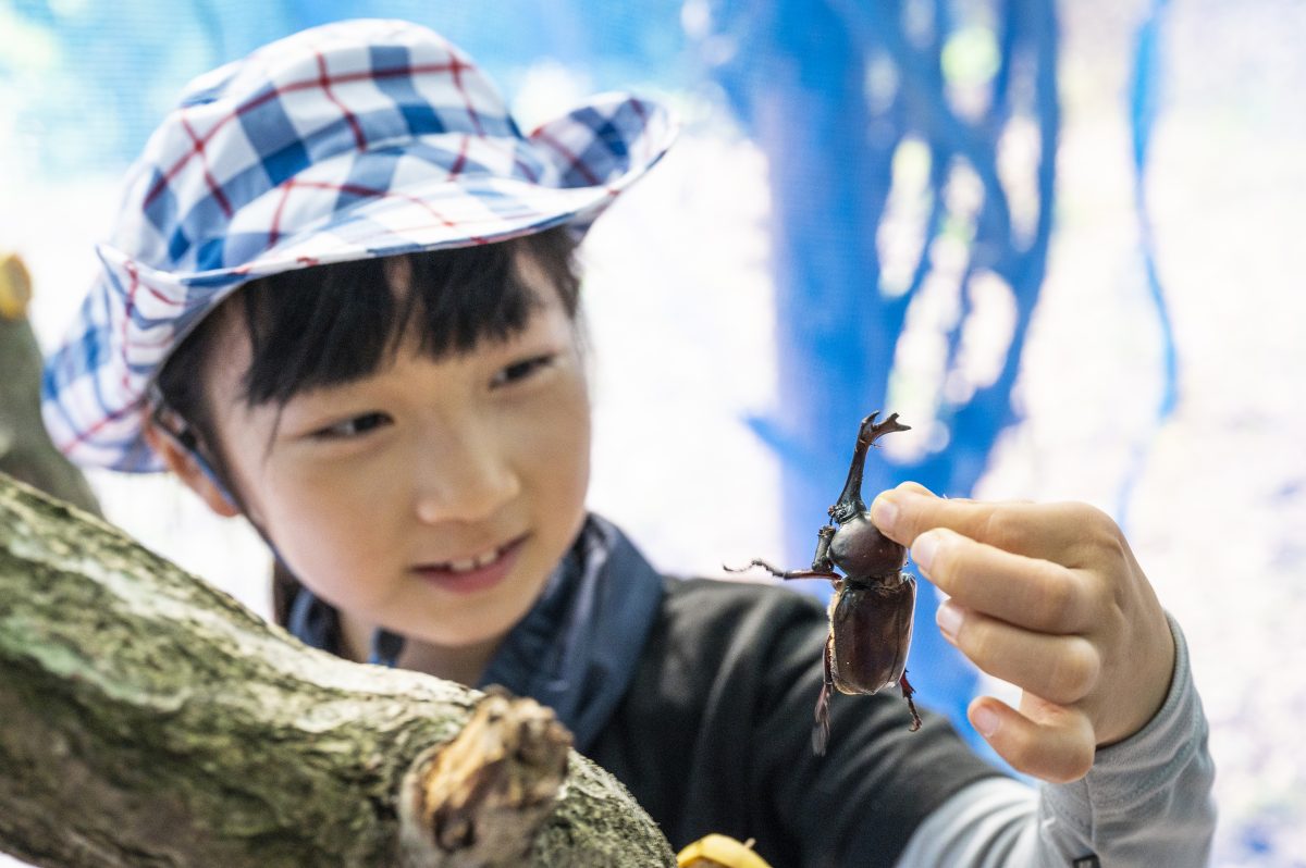 お腹がいっぱいになったら、カブトムシ取りへ! 夢中になってジェルを食べるカブトムシを観察したり、触ってみたり。娘がこんなにカブトムシに興味をもつのも少し意外でした。解放的な旅につられてしまったようです。