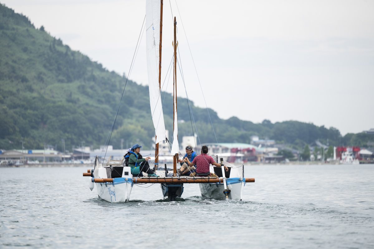 カタマランヨットはサムさんの手作り。風の力を利用して波を切り、ぐんぐんと進んだり、おだやかな海に任せるようにゆっくりと進んだり、エンジン音もなく、海をものすごく近くに感じました!