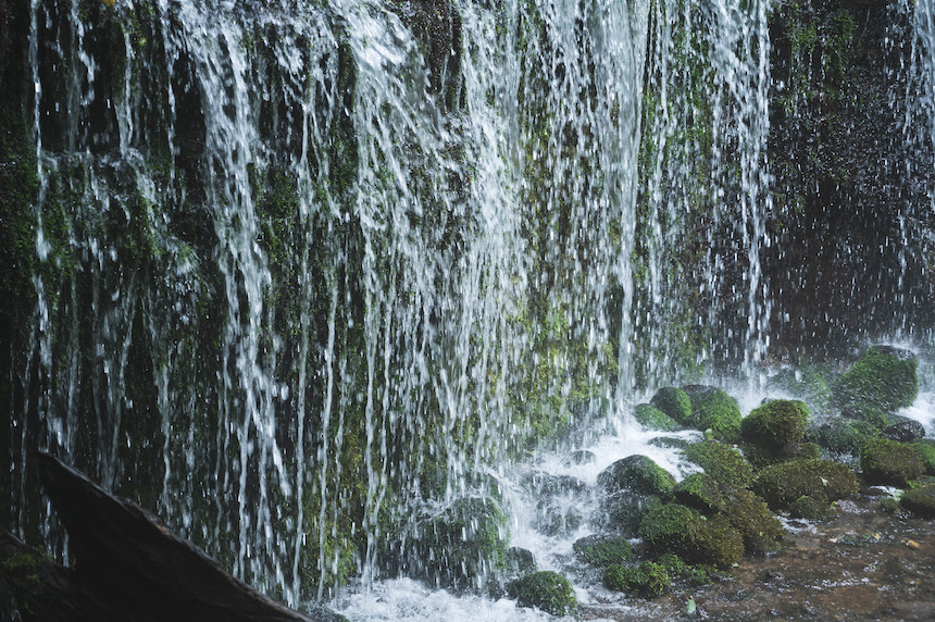 白糸の滝は山肌から湧き出している水によってできている滝。雨でもにごらないので、綺麗な滝を見ることができます。美しい滝と苔にたっぷり癒されたら、たくさんの出会いがあった森の散策もおしまいです。