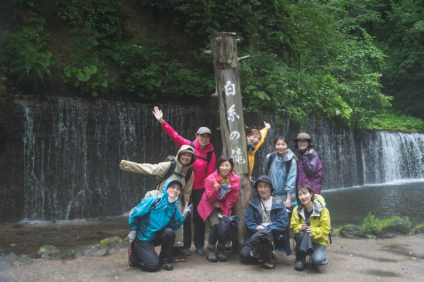 知らないことでいっぱいの森はまだまだ歩き足りないくらいですが、峰の小屋から1時間30分ほど歩いたら、白糸の滝はもう目の前に。
