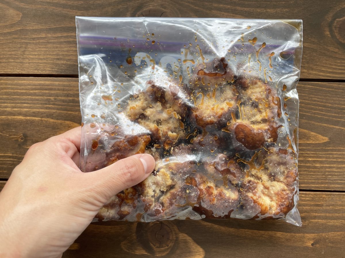 1. 袋の上からつぶした肉だんごをクッカーに入れて水で煮る。煮立ったらラーメンを投入。 酸辣湯麺がなければ、しょう油ラーメンでもOK 。