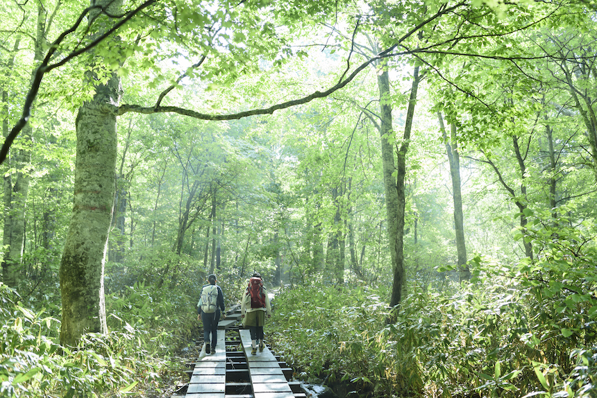 尾瀬ヶ原に続く木道で、湿原と沼を巡る旅