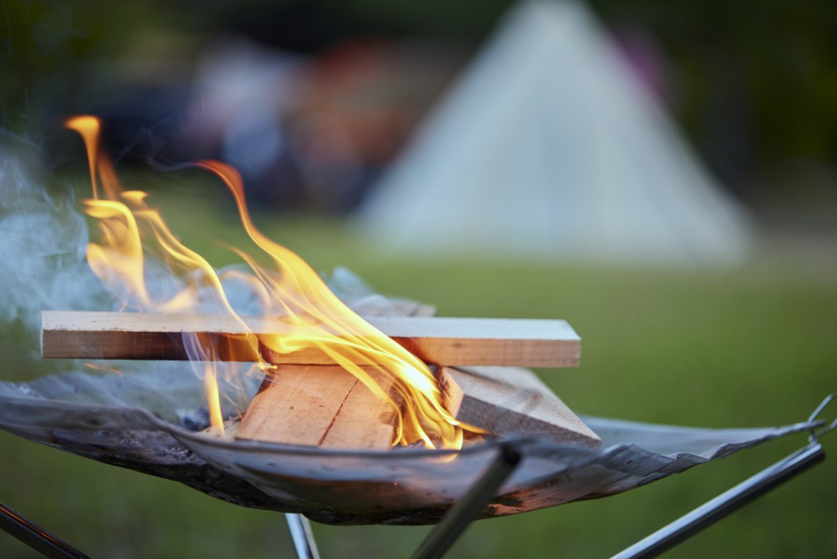 タープの下で安全に焚き火を行うなら、できるだけ小さな焚き火台を使うのも手段の1つです。小さな焚き火台を選べば、大きな薪は使えないので、豪快な焚き火ができなくなります。