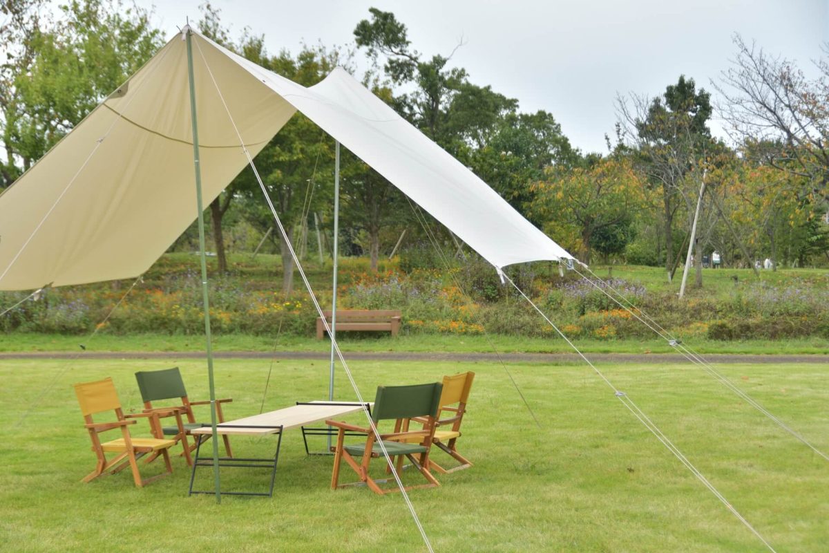 長さを調節できるタープポールを持ち合わせておくと、シーンに合わせて高さを調節できるので便利でしょう。タープポールの高さも大事ですが、倒れない安定性や耐久性も大事です。