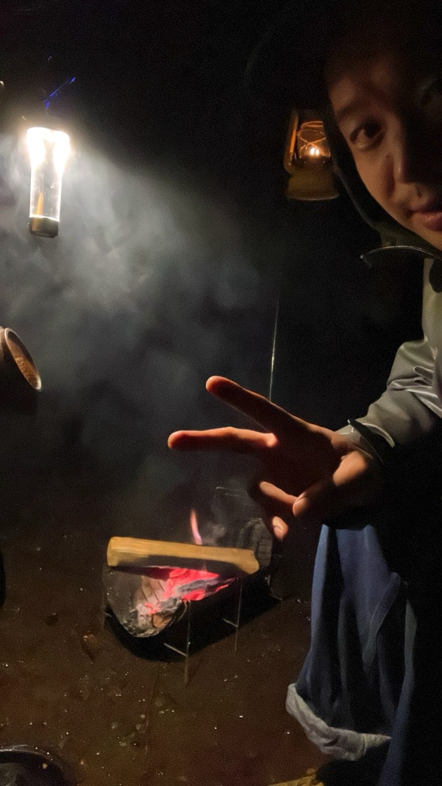 お腹を満たし、お酒も入って良い気分。この日は雨のために人気のキャンプ場もスカスカ状態。周りに人がいなかったこともあり、夜な夜なしゃべっていても大丈夫な環境。何よりも雨の音が一番大きい。23時前にスマホのカメラを使ってインスタライブをスタートした。