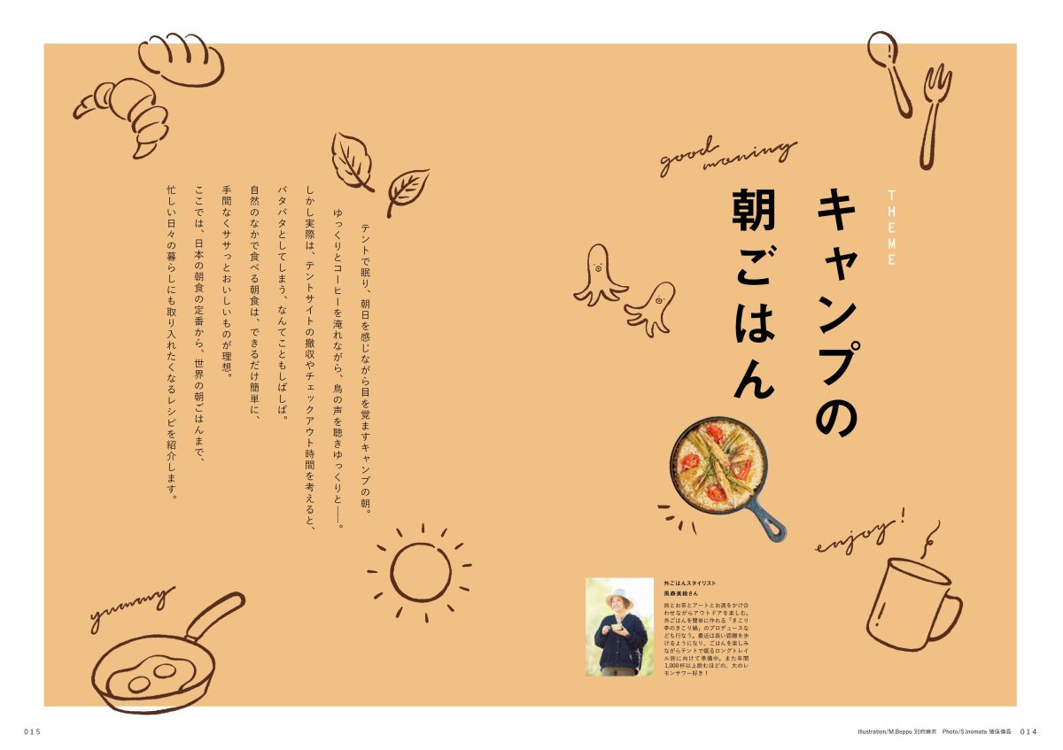 外ごはんスタイリストの風森美絵さんが提案する、キャンプの朝ごはんレシピ。見栄え◎の「小さな和風パエリア」や、キャンプでも簡単にできる「にっぽんの朝定食(鮭)」、「台湾の朝ごはん鹹豆漿(シェントウジャン)」など、日本の朝食の定番から、世界の朝ごはんまで、忙しい日々の暮らしにも取り入れたくなるレシピをお届けします。