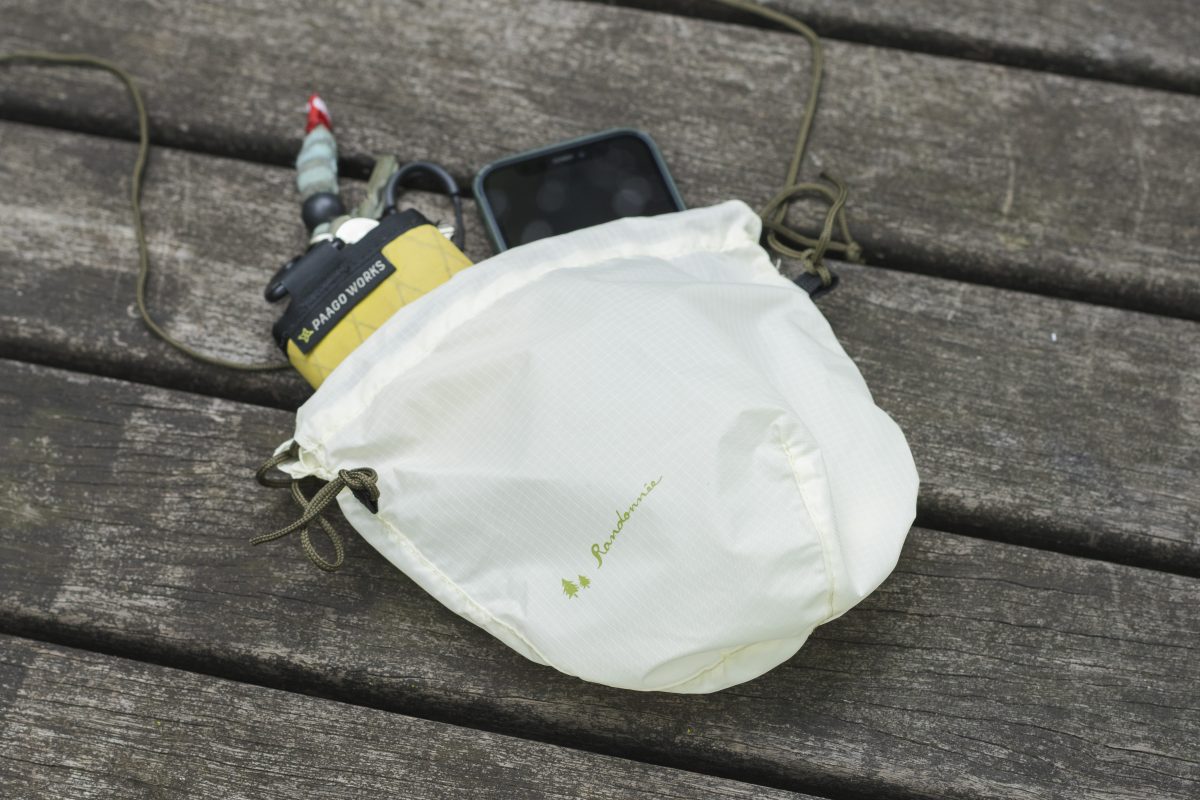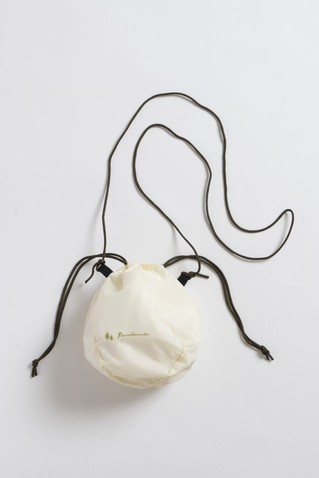 そこで今回は貴重品と日焼け止めクリームやハンカチを入れてもちょうどいい大きさのまんまるなサコッシュを作りました。 カラーはランドネの誌面も手がけるデザイナーが提案するカラーのなかからどれがいいか、Mt.ランドネ会員の皆さんへアンケートを実施。オフホワイトの本体にカーキのヒモのこの組み合わせに決まりました。行動中も登山前後のふもとでもたくさん使ってもらえたらうれしいです。