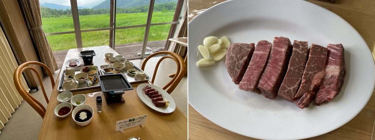 快適な滞在には、ごはんの満足感も欠かせない。温泉小屋の夕食メニューは、手作りのカレーライスをメインに、牛すき小鉢やサラダが付いてくる。さらにユニークなのは、追加料金で最高級部位のテンダーロインステーキをいただけること。せっかくならばランクアップして、ぜいたくな滞在を心ゆくまで味わい尽くしてみては。