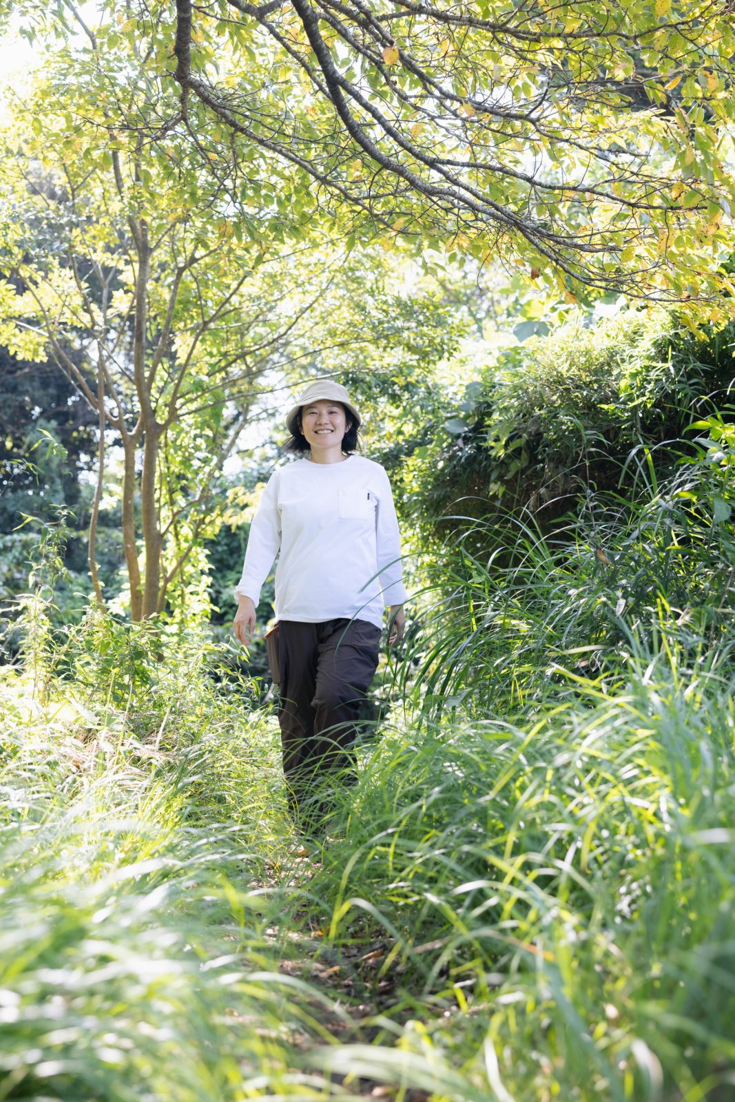 撮影する位置が決まったら、どのくらい木漏れ日を写し出せるか確認、マイナス補正の段階を変えてみると、好みの一枚を探れる。