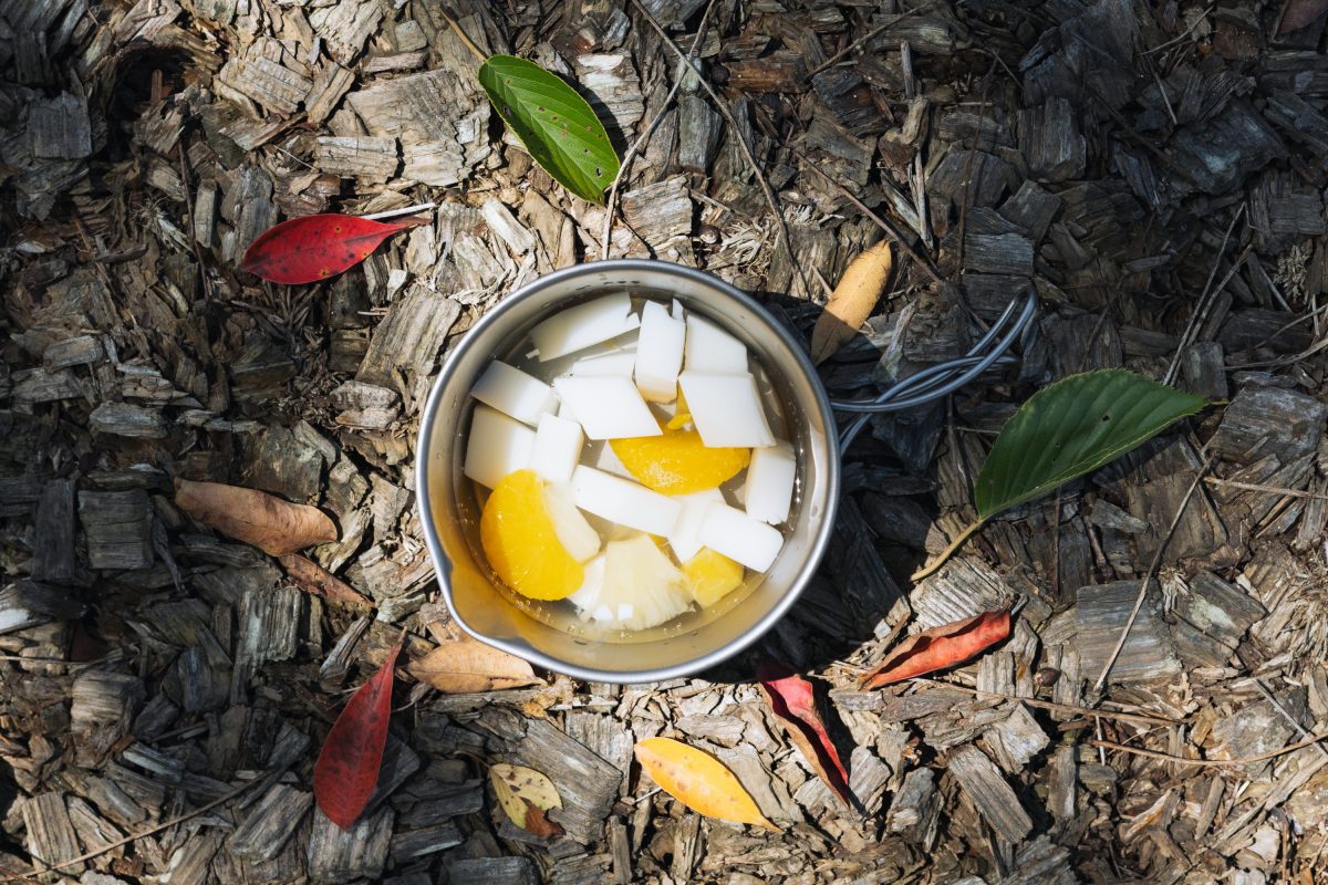 山ごはんをいろいろな角度で撮影してみたけれど、今日はおいしそうに撮影できなかったということはよくある。「山ごはんを乗せるかわいい食器やカトラリーがなくても、山ごはん自体が地味なものでも、山ごはんを置く場所を選び直すだけでおいしそうに写せます」。