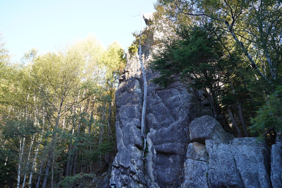 歩いている途中で、大きな岩を発見!実際にクライムオンのイベントで使われた岩で、子どもでもチャレンジできるそう。