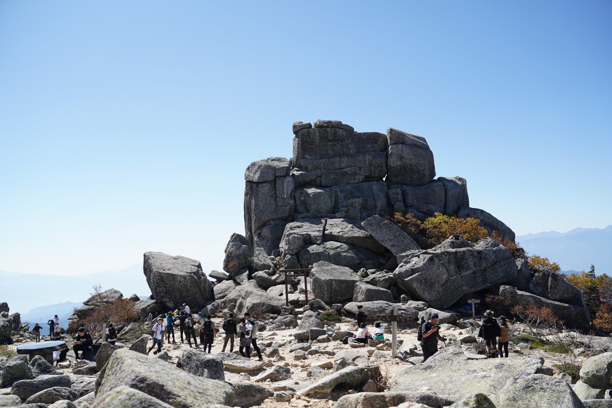 山小屋で小休憩を取ったあと、ゴツゴツとした岩場を抜け、無事に山頂に到着!