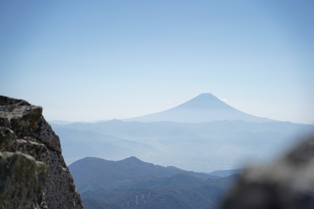 この日の山頂は大にぎわいで、山脈まで眺望できるほどに美しい南アルプスや富士山を眺めていました。