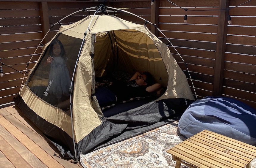 災害時に自宅で過ごすことができなくなった場合、「寝床や居場所を確保する」ことは大きな安心に繋がります。その手段のひとつとして、テントを準備しそこで眠るという経験は、もしもの時にとても心強いものになります。