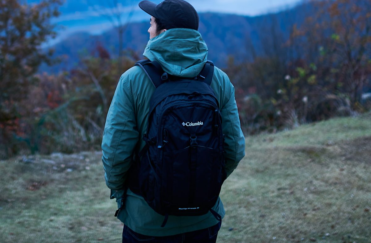 大きなバックパックは必要のない日帰り低山ハイク。今回持っていたのはコロンビアの30Lのもの。合わせやすいブラックで、ポケットの数や場所もお気に入り。とくにメインが2つあるような構造なので、行動時に開けるところと、休憩時にしか開けないところで分けて使用できるのがGOOD!!