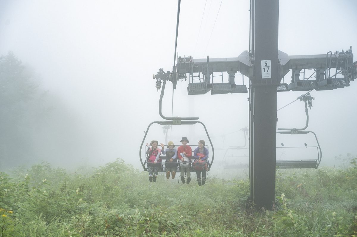 八方アルペンラインの乗り場前に集合した恵理さんと、たのしみ隊のメンバー。乗り込んだゴンドラから、好きな山の話が絶え間なく続く。この日の天気予報はあいにくの雨。いつ着ることになるのだろうと、心のなかで不安に思いながら、レインウエアをバックパックに詰め込む。